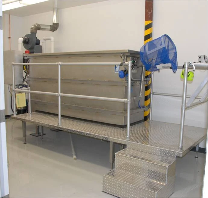 The remote platform is mounted on a custom designed cart that rolls out of the way when not in use. Includes an on-board compressor.